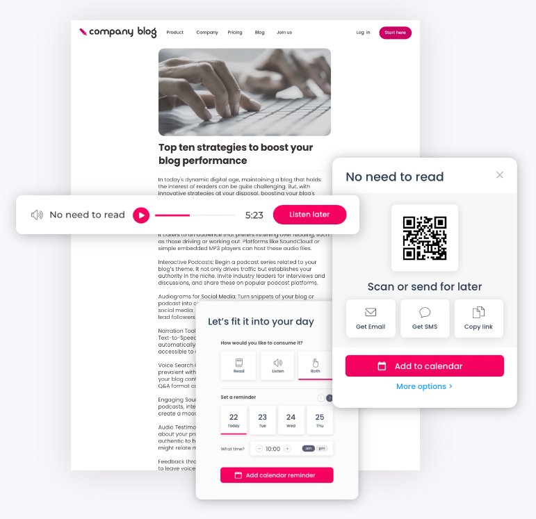 Allow your audience to listen or read whenever they like,