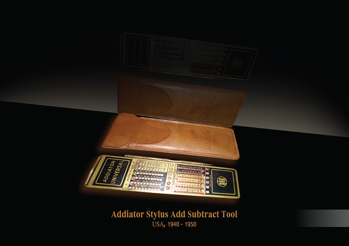 Addiator Stylus Add-Subtract Tool (USA, 1940–1950) - 202Here’s a pocket calculator — before electricity. The Addiator was a slim metal plate with tiny columns of numbers. Using a stylus, you slid the notches to perform ...