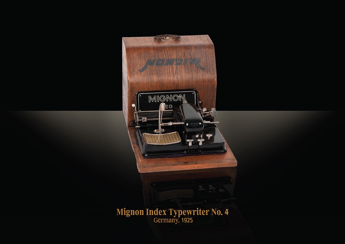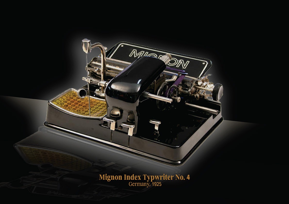 Mignon Index Typewriter No. 4, Germany, 1925 - 130This is the Mignon Index Typewriter No. 4, Germany, 1925. This curious machine broke away from the traditional keyboard layout. Instead of pressing keys, users would point a metal...