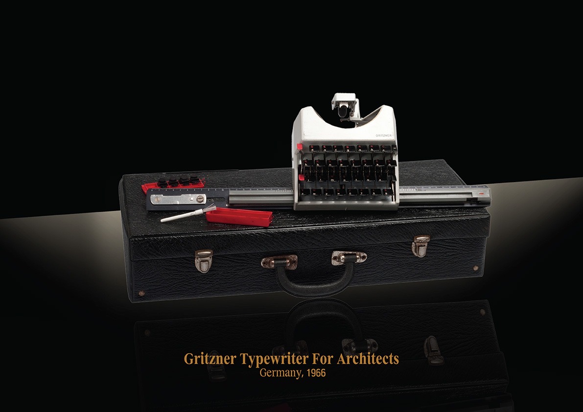 This is the Gritzner Typewriter for Architects, Germany, 1966. Unlike traditional typewriters, this specialized tool was built for precision and layout. Used by architects and draftsmen, the Gritzner featured a straight rail and unique keyboard configuration to create labels, diagrams, and technical annotations. Housed in a sturdy black carrying case, it came with accessories like stencils and guides. Its industrial, futuristic design echoes the mid-century shift toward specialized professional tools—and it remains one of the more unusual and purpose-driven machines in the history of typing.